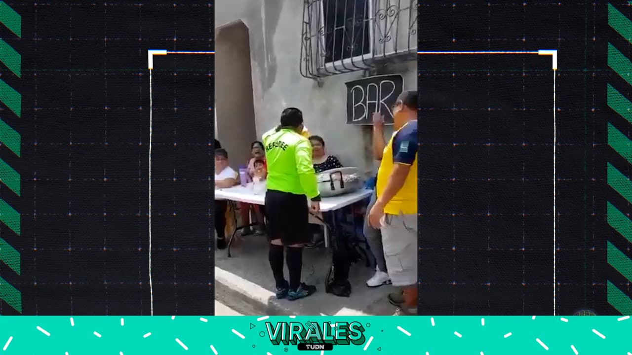 En pleno partido y antes de marcar un penal, un silbante amateur hizo una pausa para refrescarse... ¡con un trago de cerveza!