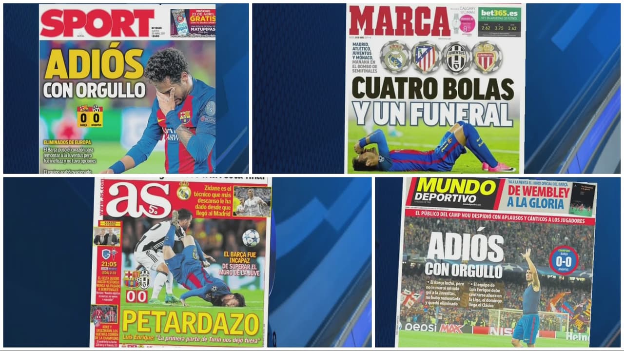 Los diarios identificados con el club culé hablaron de caída con orgullo, mientras que los madridistas se regodearon con la salida del Barcelona de la Champions. Aquí los títulos.