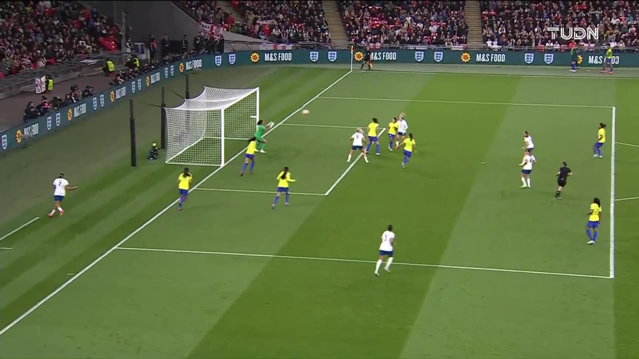 ¡A las manos! Remate de cabeza Hemp y Leticia abraza el balón