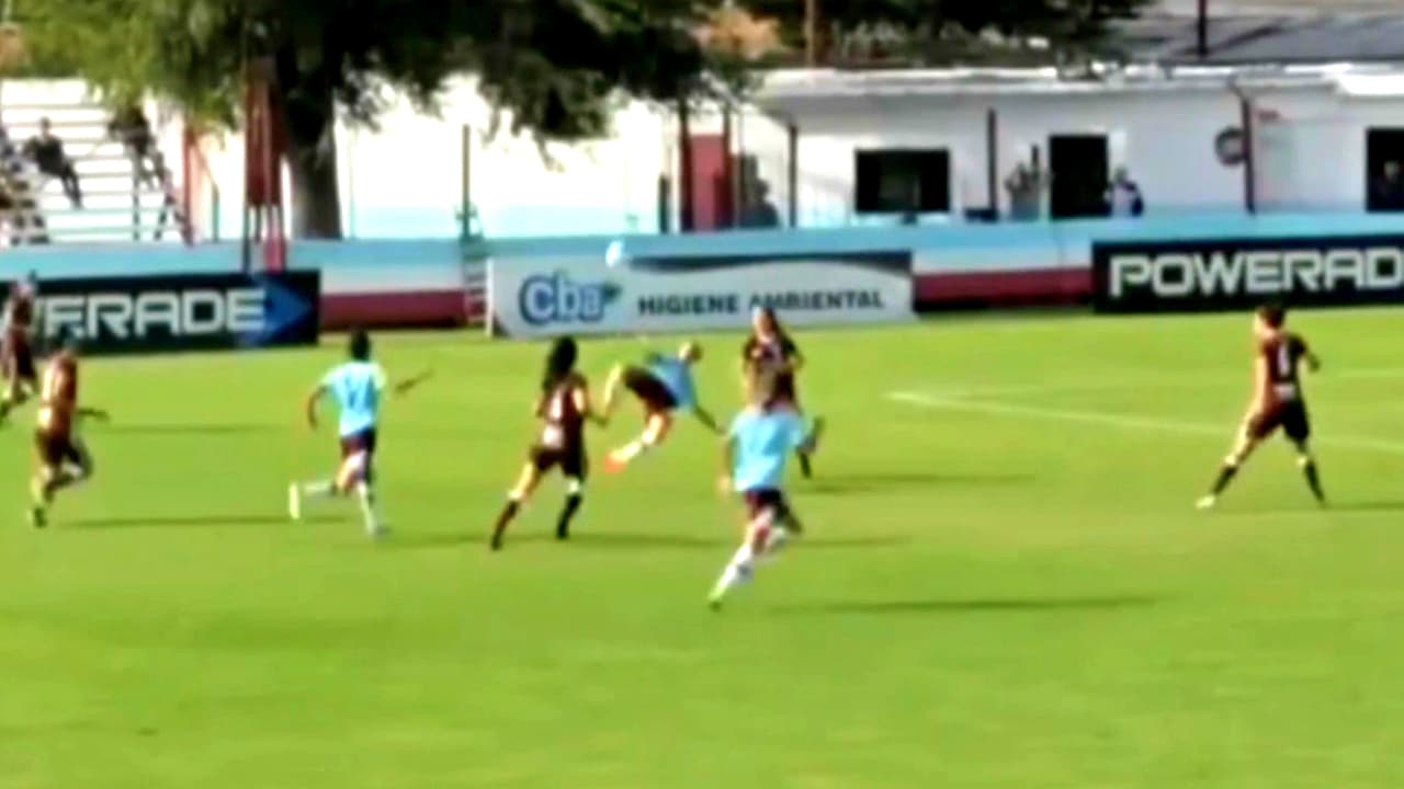 Tras una maravillosa triangulación de balón por los aires, la futbolista, de espaldas al arco y lejos del arco rival, realizó la maniobra con gran maestría, colgando a la portera adversaria. Aquí el talento.
