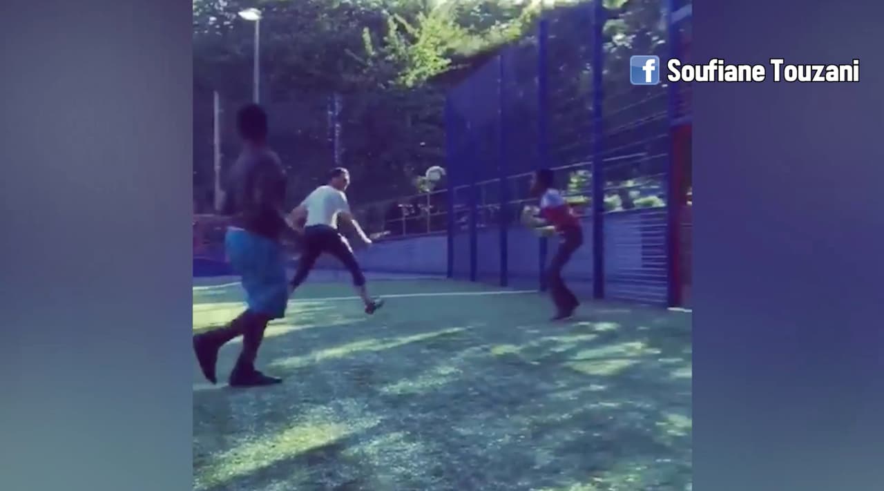 En una cancha de fútbol callejero, les da una cátedra a unos chicos que quedan deslumbrados con su magia.
