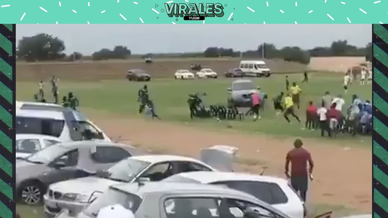 Insólitas imágenes de la Tercera División de Sudáfrica con un fanático que no pudo calmarse.