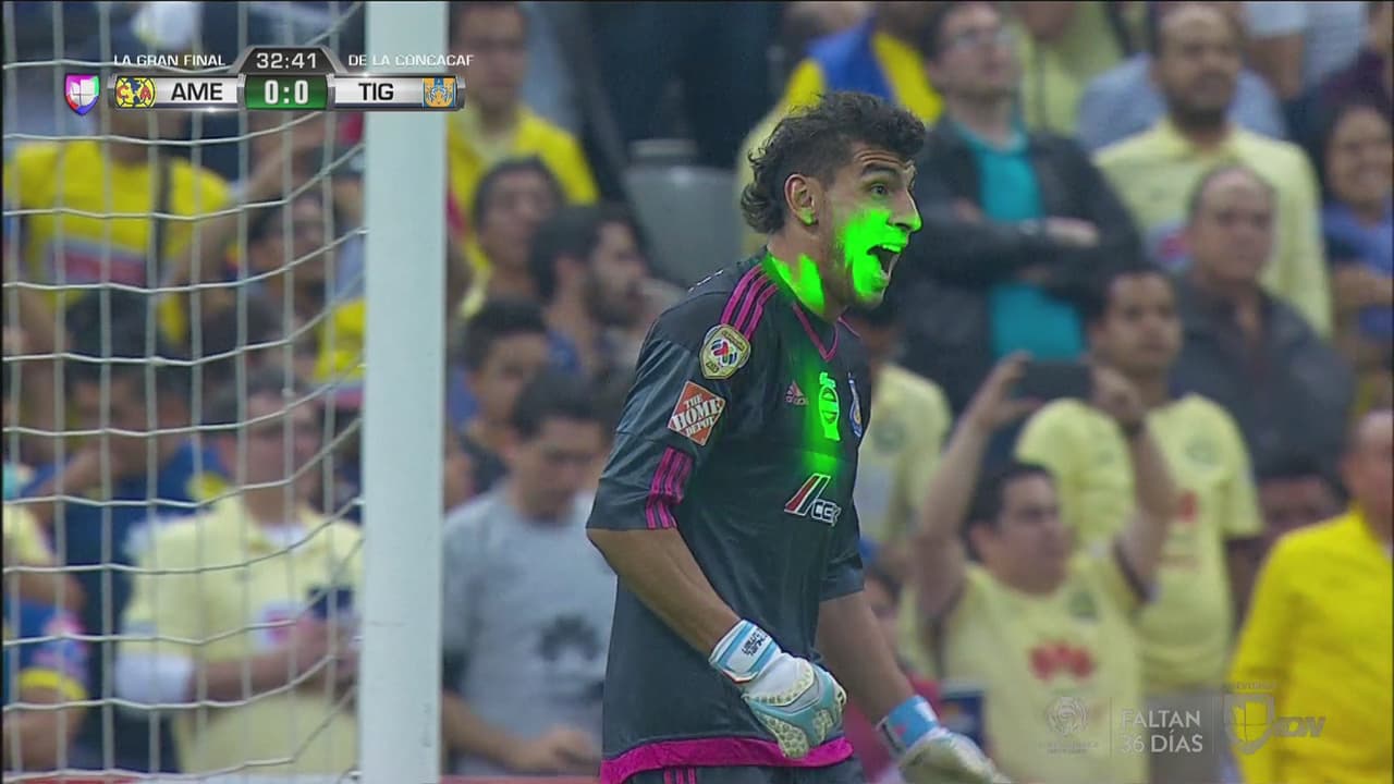 Aficionados de América han molestado la visibilidad de los jugadores de Tigres con un láser desde las gradas.