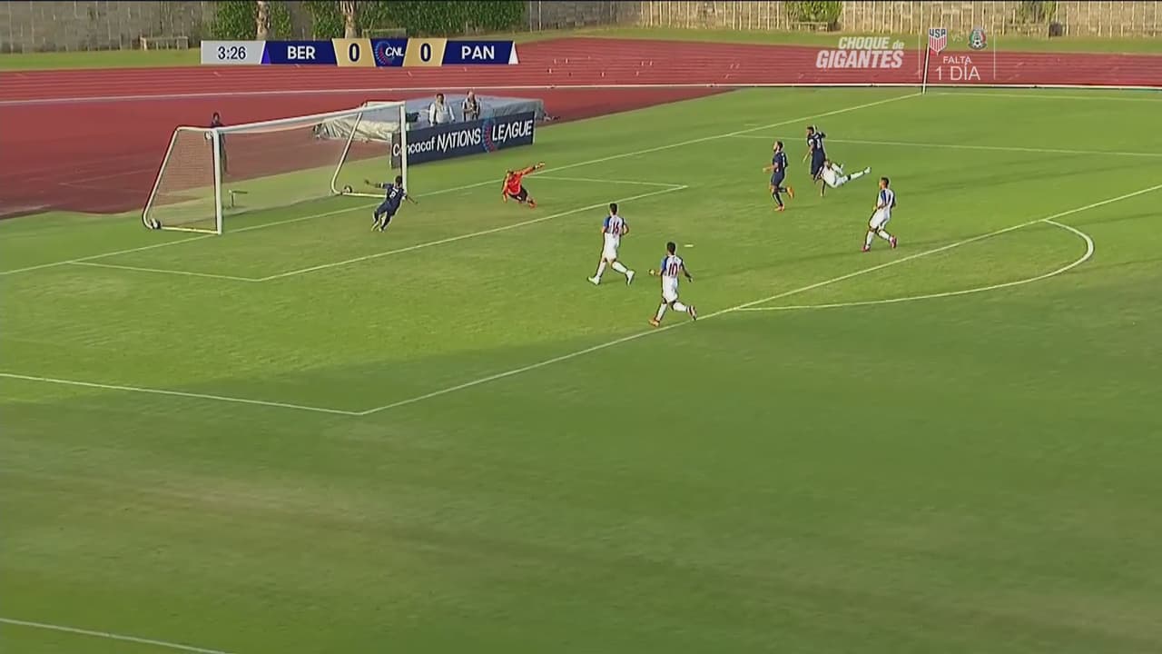 El jugador panameño se escapa y dispara en el área pero el balón pasa por un costado.
