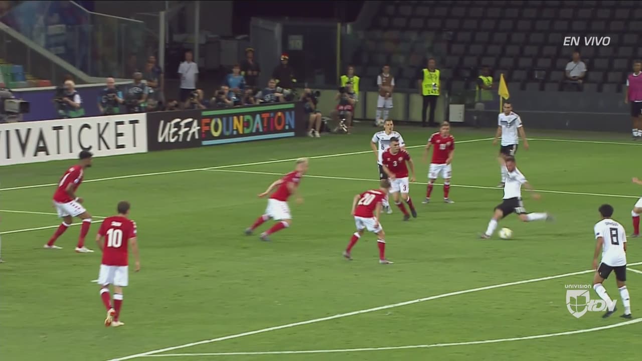 Alemania logró una buena victoria en su debut en el Europeo Sub-21 tras superar por 3-1 a Dinamarca, gracias a un doblete Marco Richter y un tanto de Gian-Luca Waldschmidt, resultado que le permite a los germanos terminar como líderes del Grupo B junto a Austria luego de finalizar la primera jornada.