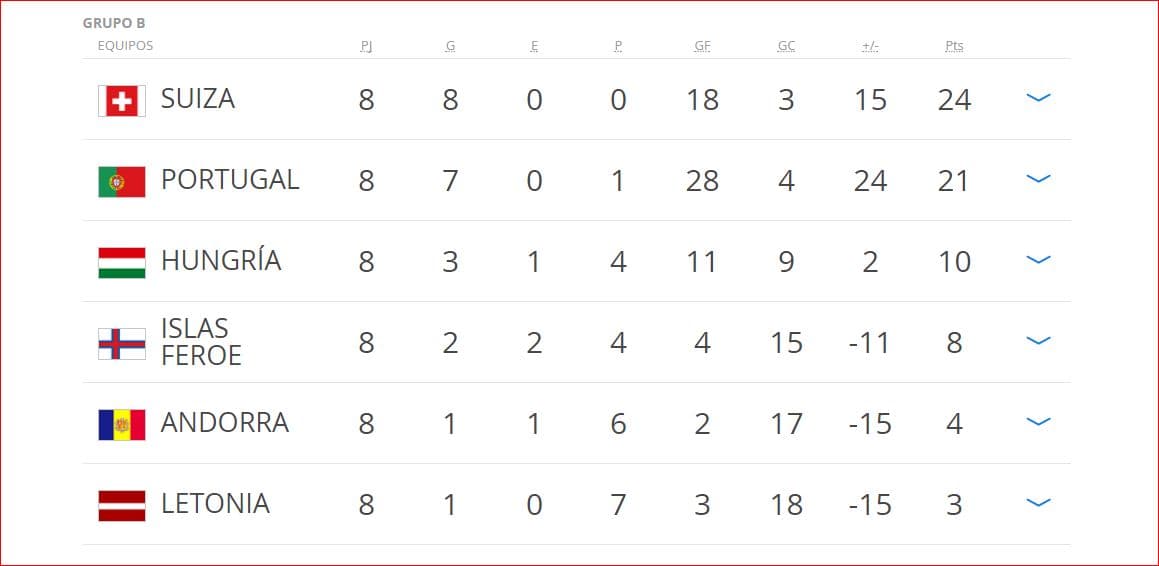 Con dos fechas por disputarse en este Grupo B, todo se definirá seguramente en la última jornada, cuando Portugal reciba a Suiza en un mano a mano que paralizará corazones. Antes de eso, ambos se enfrentan con rivales eliminados: los lusitanos viajan a Andorra y los suizos reciben a Hungría.