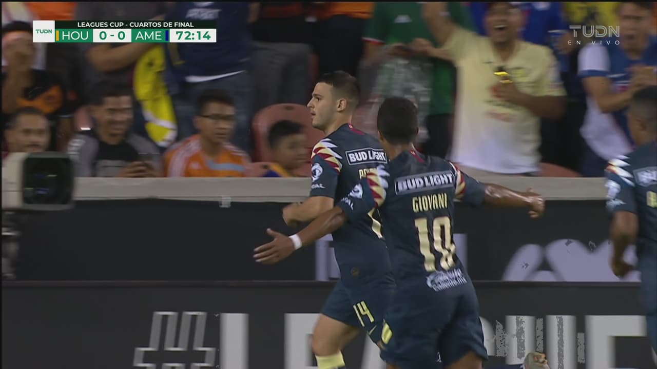 Gran triangulación azulcrema entre Gio dos Santos, Nico Castillo y el colombiano que definió de tres dedo tras tirar un ‘cañito’ y autopase entrando al área.
