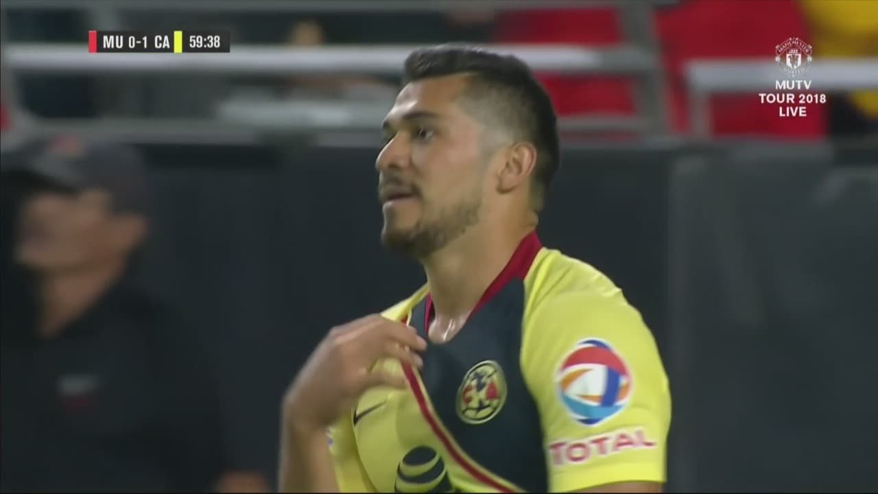 En la segunda parte Miguel Herrera y José Mourinho realizaron cambios en sus equipos y dichas modificaciones beneficiaron a las Águilas que al 59’ Henry Martín marcó el primer gol del juego con un brillante remate de cabeza.