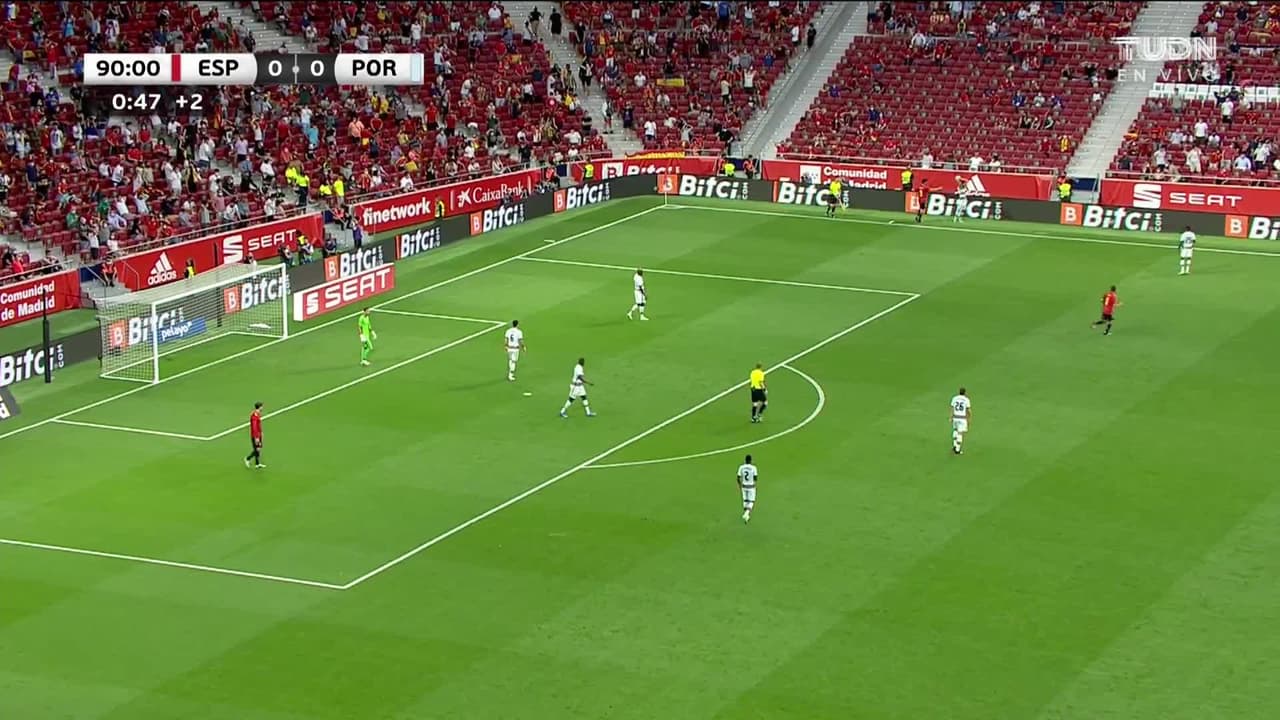 Álvaro Morata (España) remata al travesaño| Disparo con la derecha desde el lado izquierdo dentro del área. Asistencia de José Gayà pase largo.