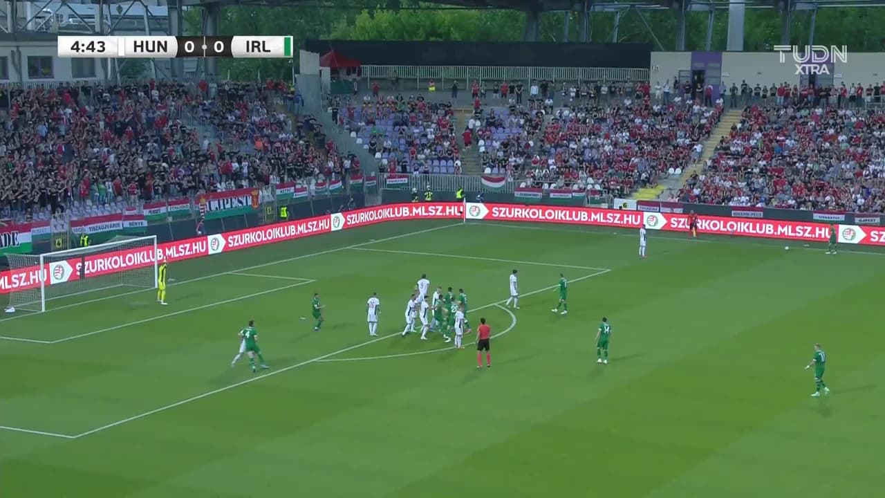 John Egan (Irlanda) remata al travesaño| disparo de cabeza desde el centro del área. Asistencia de Josh Cullen con un centro al área tras el cobro de una falta.