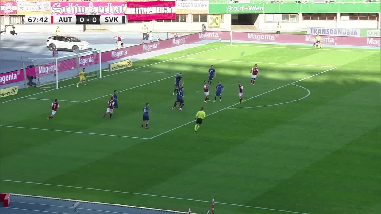 Marko Arnautovic (Austria) remata al poste izquierdo| Disparo con la derecha desde el lado derecho dentro del área. Asistencia de Valentino Lazaro.