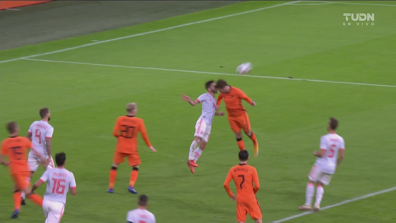 Fue entonces cuando vino el duro choque de cabezas entre Hateboer y Gayá, aunque fue el seleccionado de España fue el que sacó la peor parte por el corte que se llevó y que no le permitió seguir en el partido. Su lugar fue ocupado por Reguilón.