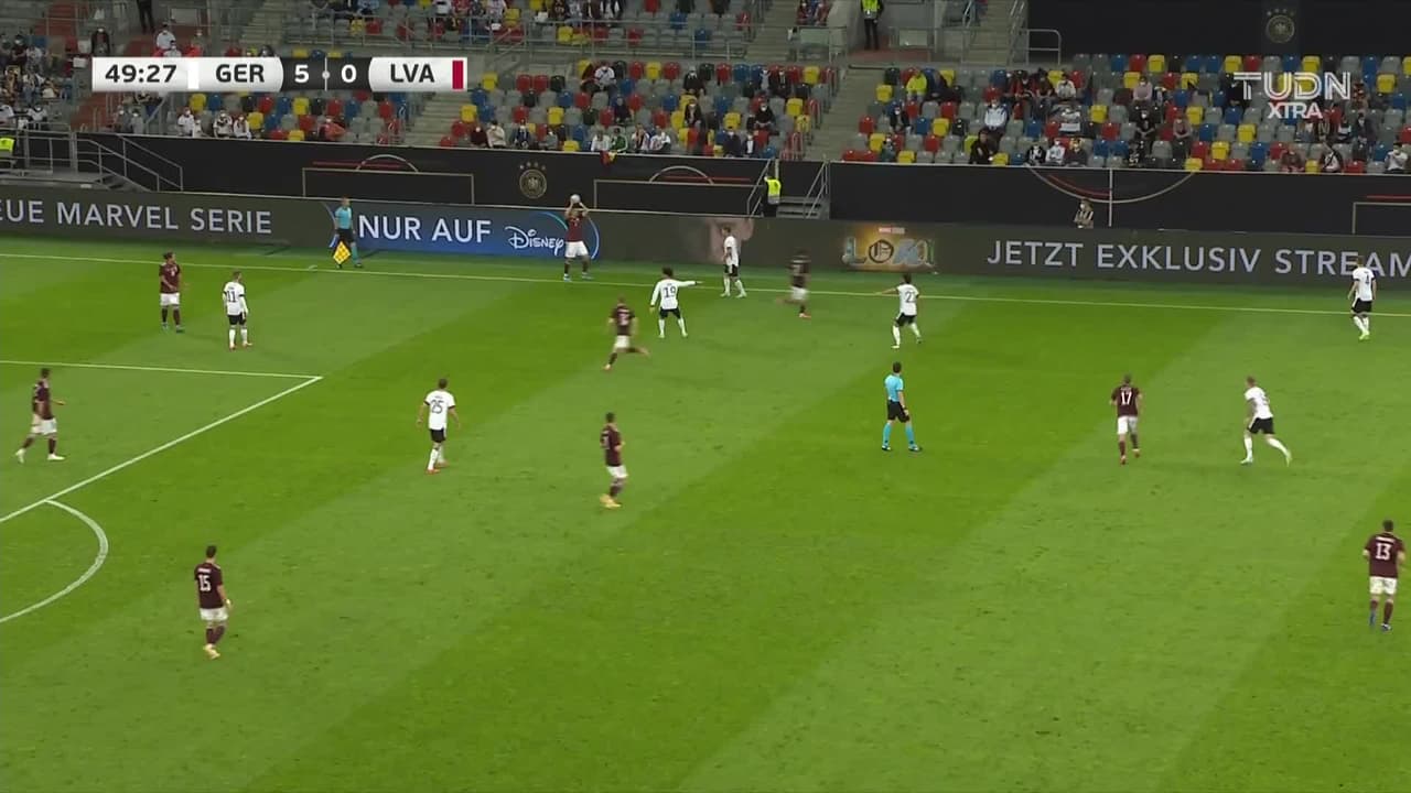 ¡Gol! Alemania 6| Letonia 0. Timo Werner (Alemania) Disparo con la derecha a quemarropa desde el lado derecho al centro de la portería. Asistencia de Joshua Kimmich.