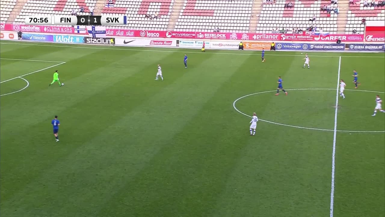 ¡Gol! Finlandia 0| Eslovaquia 2. Erik Jirka (Eslovaquia) zurdazo desde fuera del área.