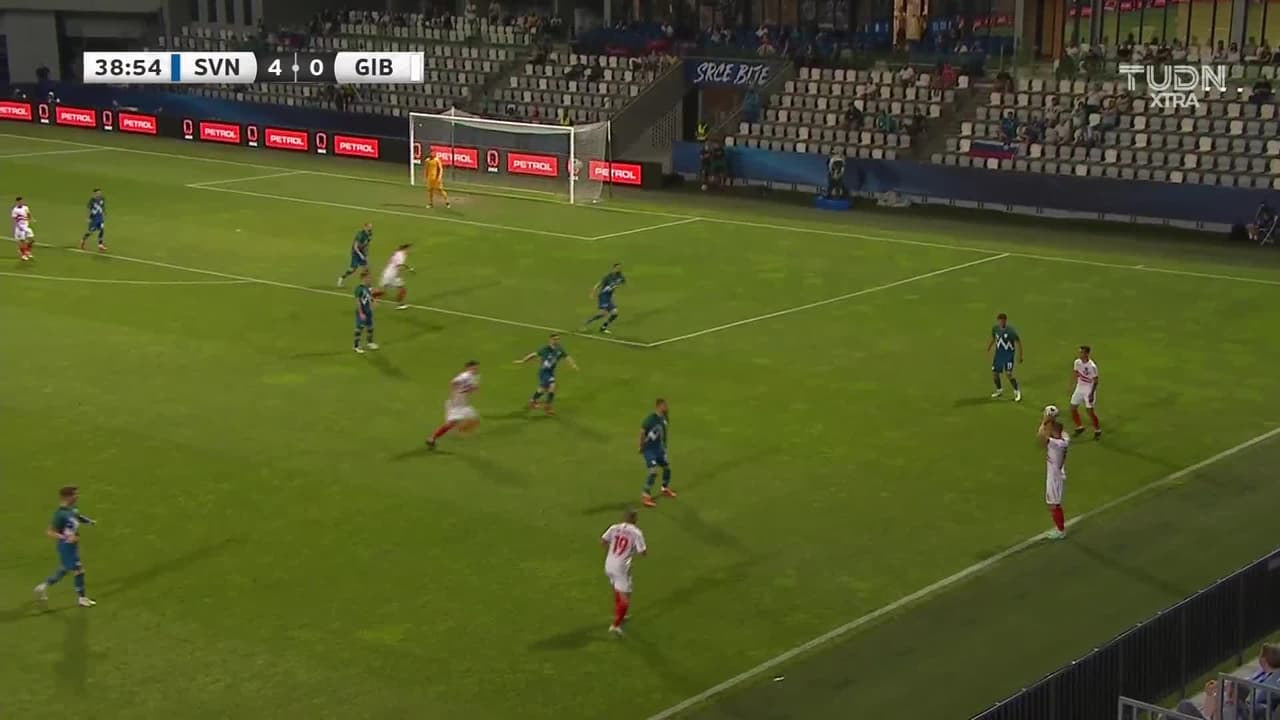 ¡Gol! Eslovenia 4| Gibraltar 0. Jan Mlakar (Eslovenia) Disparo con la derecha desde el centro del área.