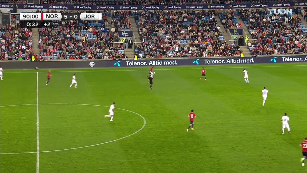 ¡Gol! Noruega 6| Jordania 0. Hugo Vetlesen (Noruega) Disparo con la derecha desde el centro del área.