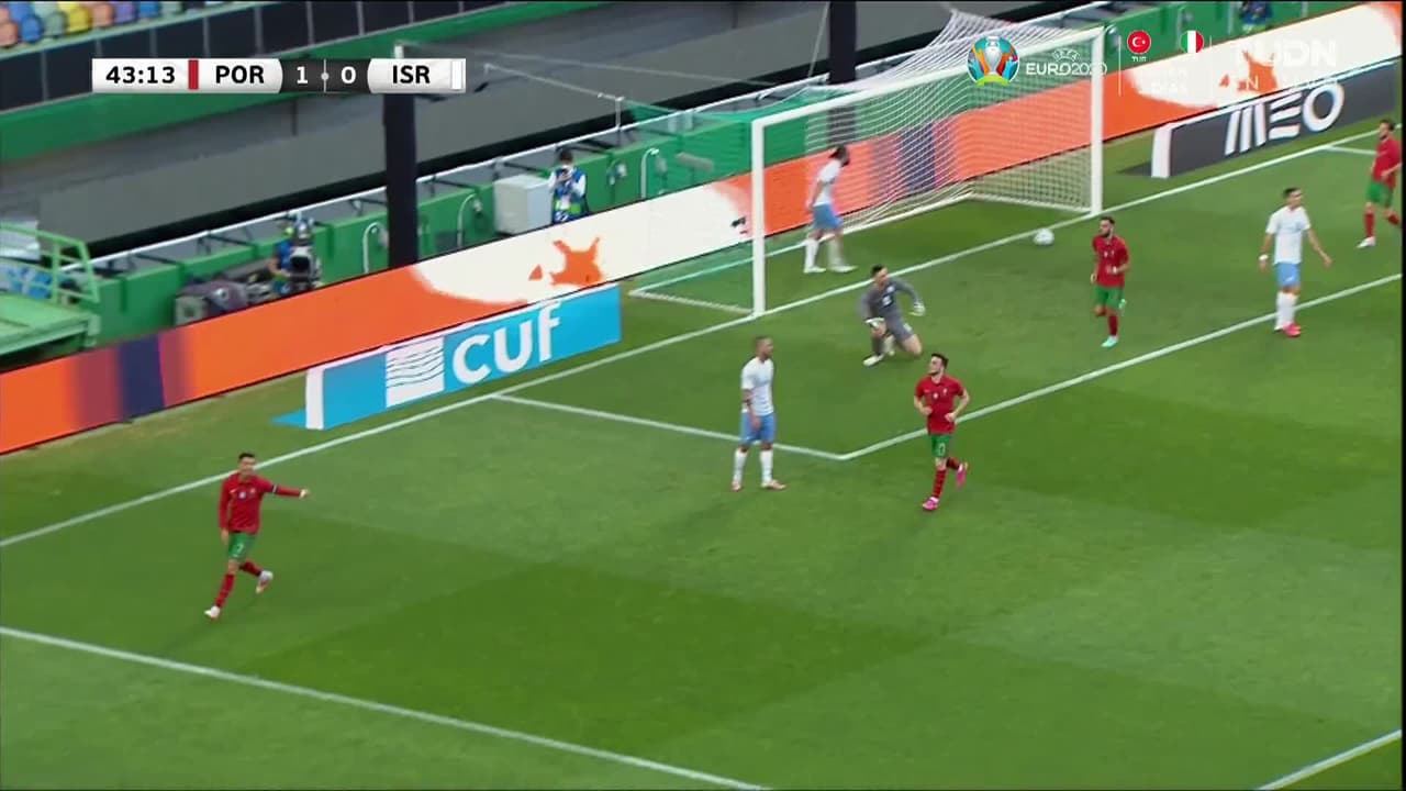 ¡Gol! Portugal 2| Israel 0. Cristiano Ronaldo (Portugal) zurdazo desde el lado izquierdo dentro del área al centro de la portería. Asistencia de Bruno Fernandes tras un contragolpe.