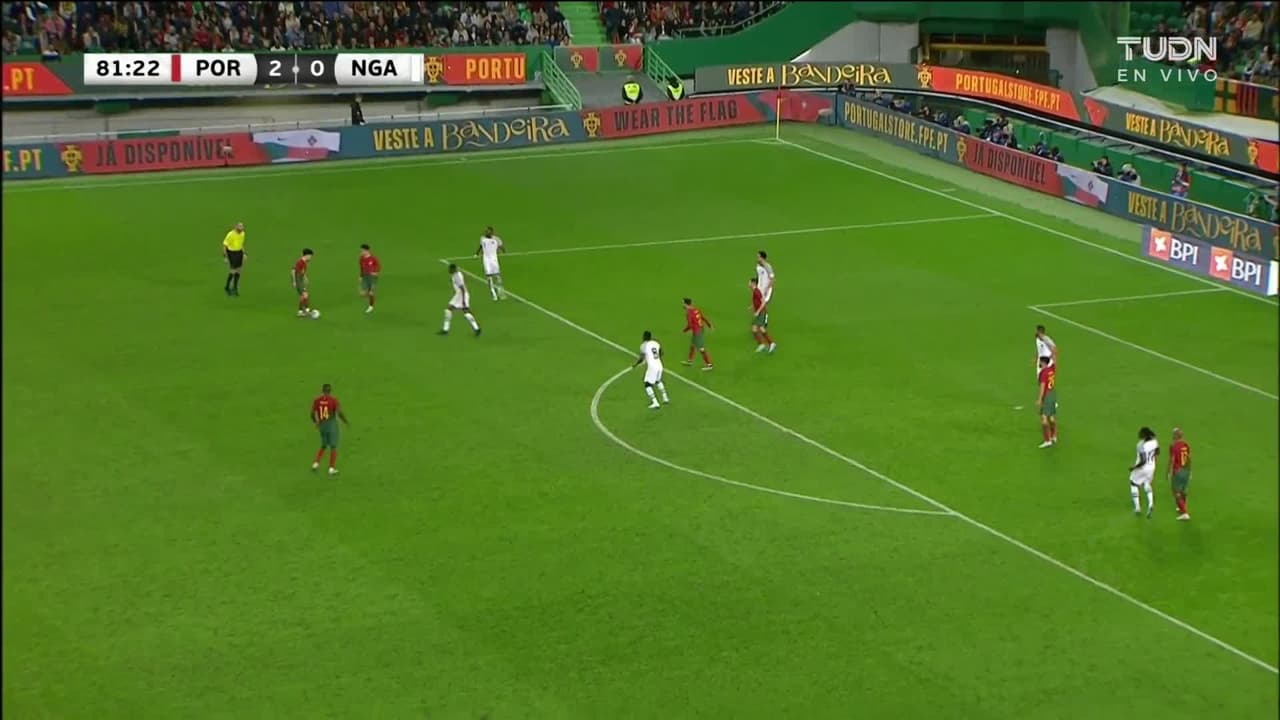 ¡Gol! Portugal 3| Nigeria 0. Gonçalo Ramos (Portugal) Disparo con la derecha desde el centro del área al centro de la portería. Asistencia de Raphaël Guerreiro.