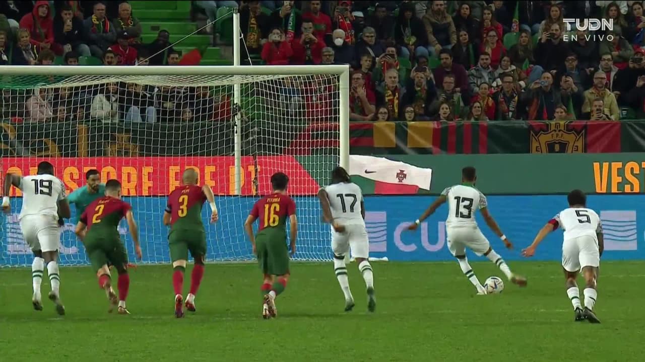 ¡Gol! Portugal 4| Nigeria 0. João Mário (Portugal) Disparo con la derecha desde el centro del área por el lado derecho de la portería. Asistencia de Gonçalo Ramos.