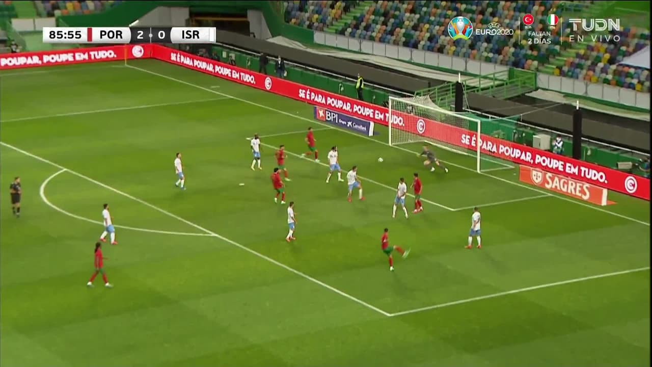 ¡Gol! Portugal 3| Israel 0. João Cancelo (Portugal) zurdazo desde el lado derecho dentro del área.