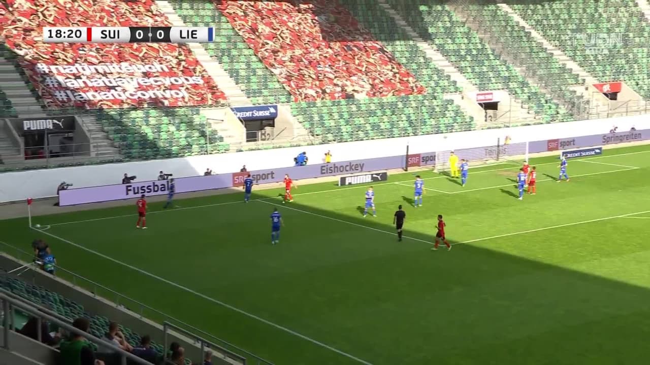 ¡Gol! Suiza 1| Liechtenstein 0. Mario Gavranovic (Suiza) disparo de cabeza desde muy cerca tras un saque de esquina.
