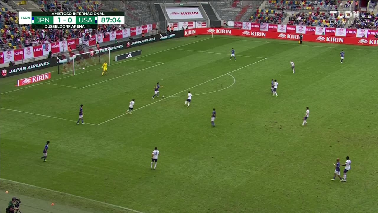 ¡Gol! Japón 2| Estados Unidos (Selección de futbol) 0. Kaoru Mitoma (Japón) Disparo con la derecha desde el lado izquierdo dentro del área.