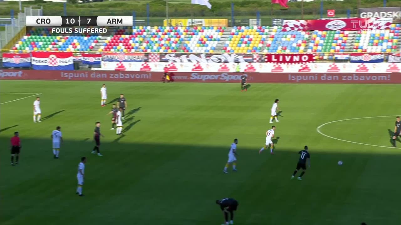 Tiro atajado junto al lado derecho de la portería. Andrej Kramaric (Croacia) zurdazo desde fuera del área. Asistencia de Ante Rebic.