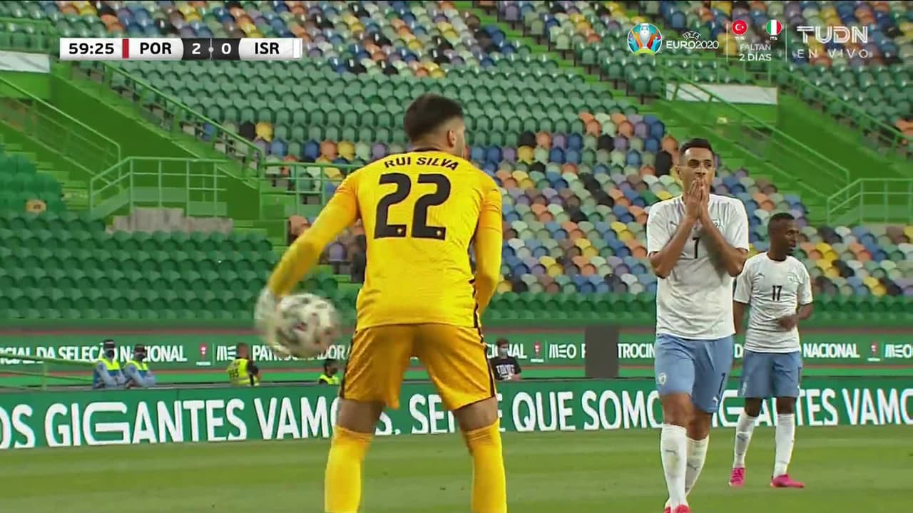 Tiro atajado raso al centro del arco. Bernardo Silva (Portugal) zurdazo desde el centro del área. Asistencia de Bruno Fernandes.