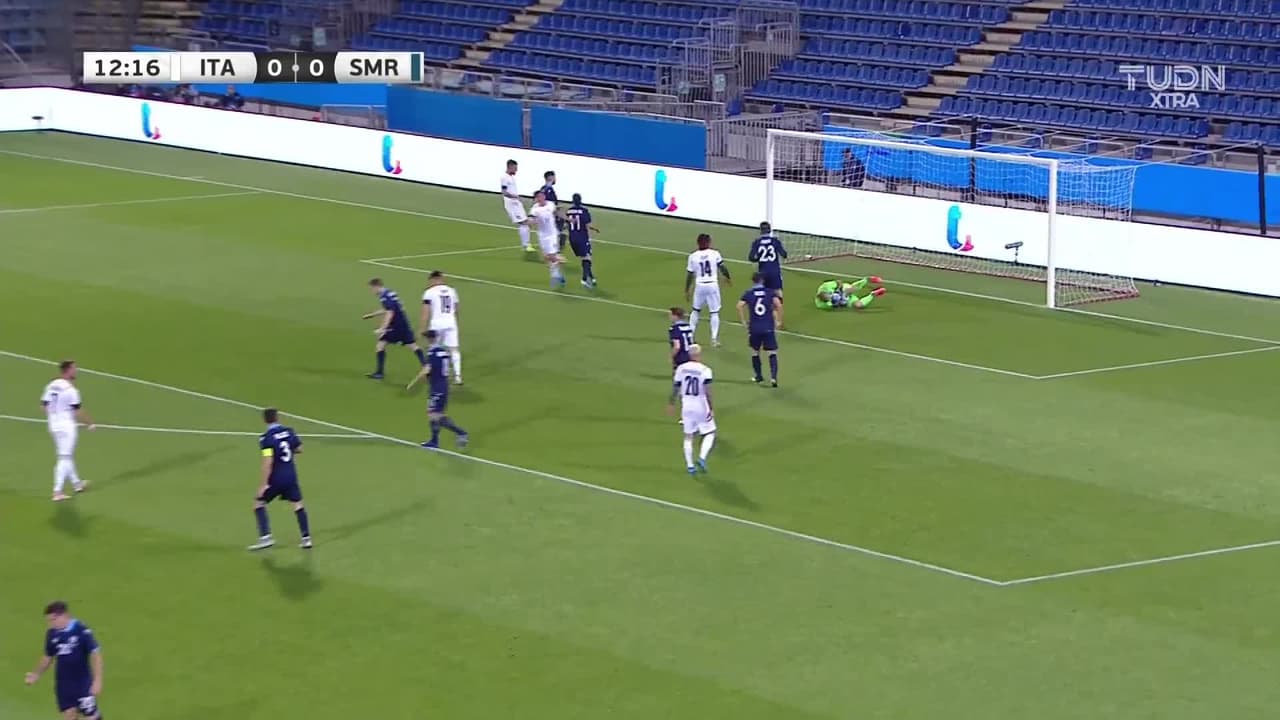 Tiro atajado. Federico Bernardeschi (Italia) zurdazo desde el lado derecho dentro del área.