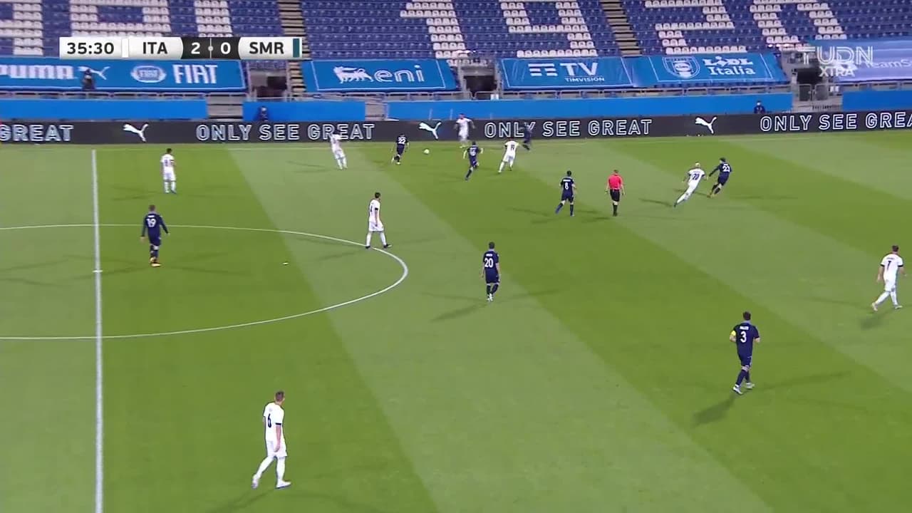 Tiro atajado por abajo a la izquierda. Gaetano Castrovilli (Italia) Disparo con la derecha desde el centro del área. Asistencia de Federico Bernardeschi después de un pase en profundidad.