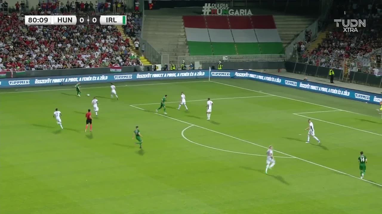Tiro atajado por abajo a la izquierda. James McClean (Irlanda) Disparo con la derecha desde el centro del área. Asistencia de Jason Knight con un centro al área.