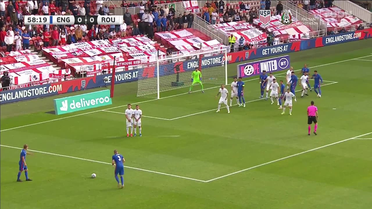 Tiro atajado. James Ward-Prowse (Inglaterra) Disparo con la derecha desde muy lejos por la izquierda y en posición complicada.