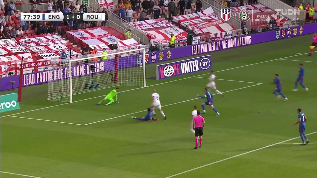 Tiro atajado raso al centro del arco. Jude Bellingham (Inglaterra) zurdazo desde el centro del área.