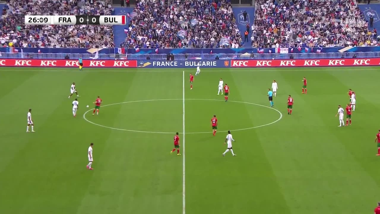 Tiro atajado. Kylian Mbappé (Francia) Disparo con la derecha a quemarropa desde el lado izquierdo.