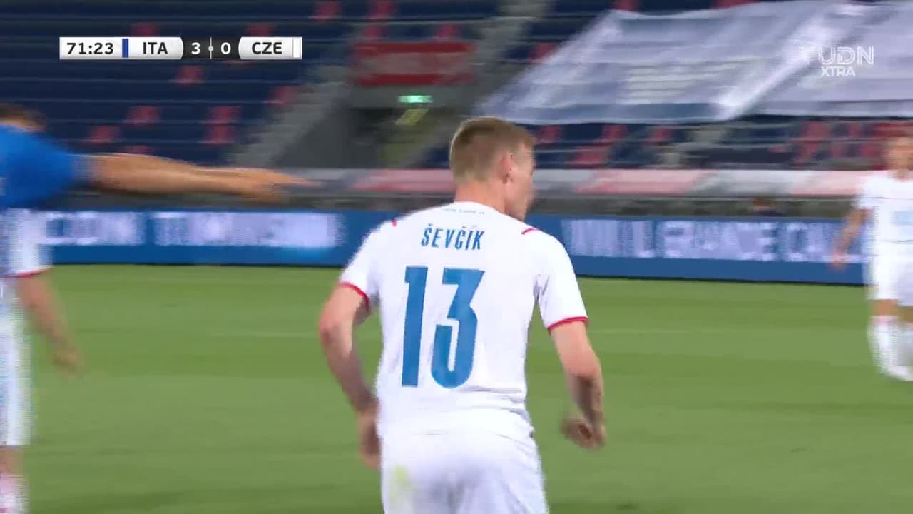 Tiro atajado raso al centro del arco. Petr Sevcik (República Checa) Disparo con la derecha desde el centro del área. Asistencia de Tomas Soucek.