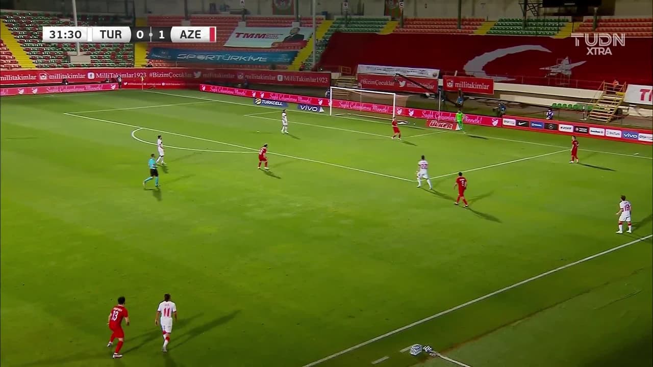Tiro atajado junto al lado derecho de la portería. Ramil Sheydayev (Azerbaiyán) Disparo con la derecha sin ángulo desde la derecha. Asistencia de Ismayil Ibrahimli.