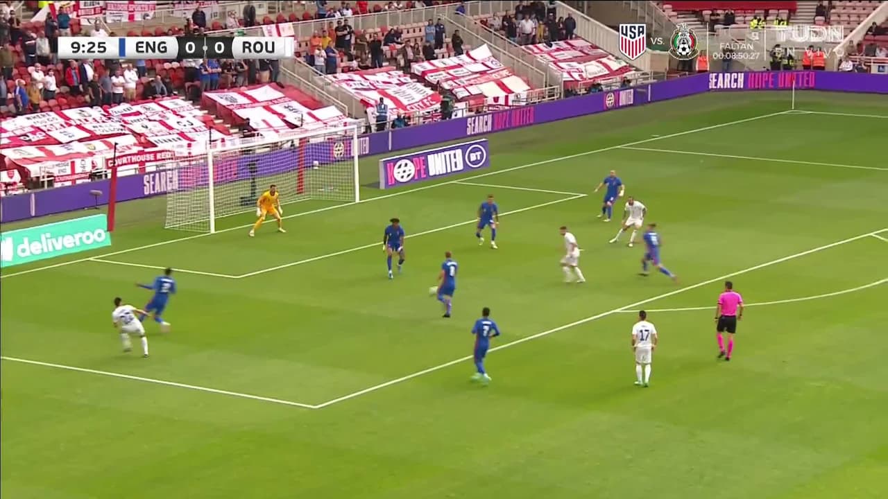 Tiro atajado raso al centro del arco. Razvan Marin (Rumanía) Disparo con la derecha desde el centro del área. Asistencia de Camora.