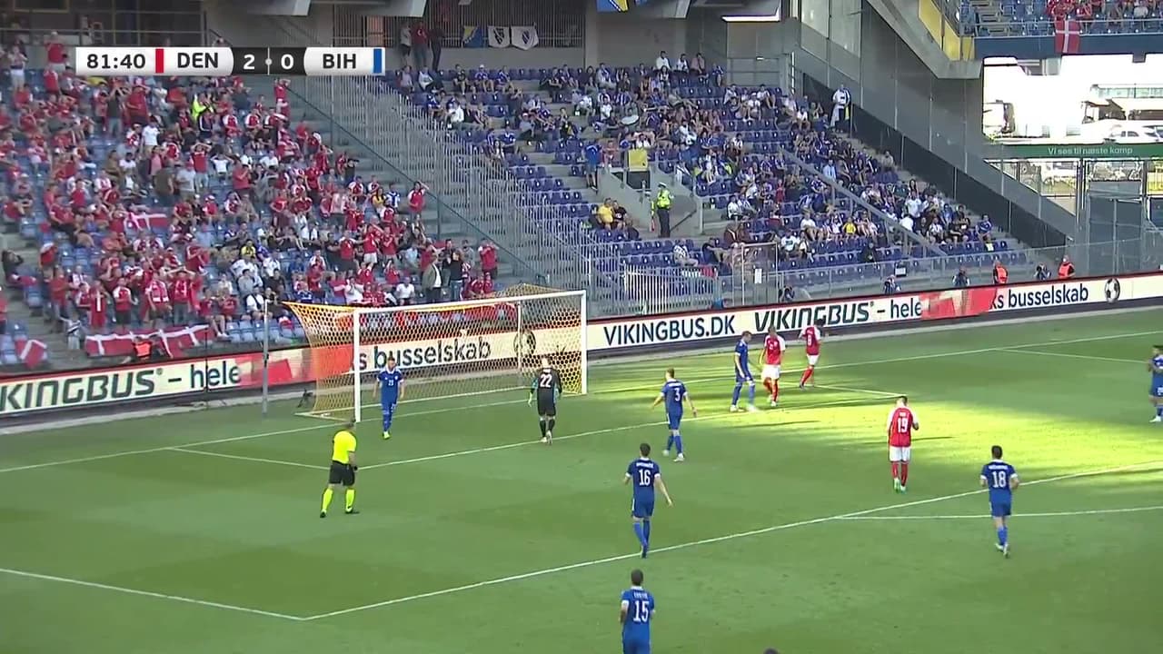 Tiro atajado. Thomas Delaney (Dinamarca) Disparo con la derecha desde el centro del área.