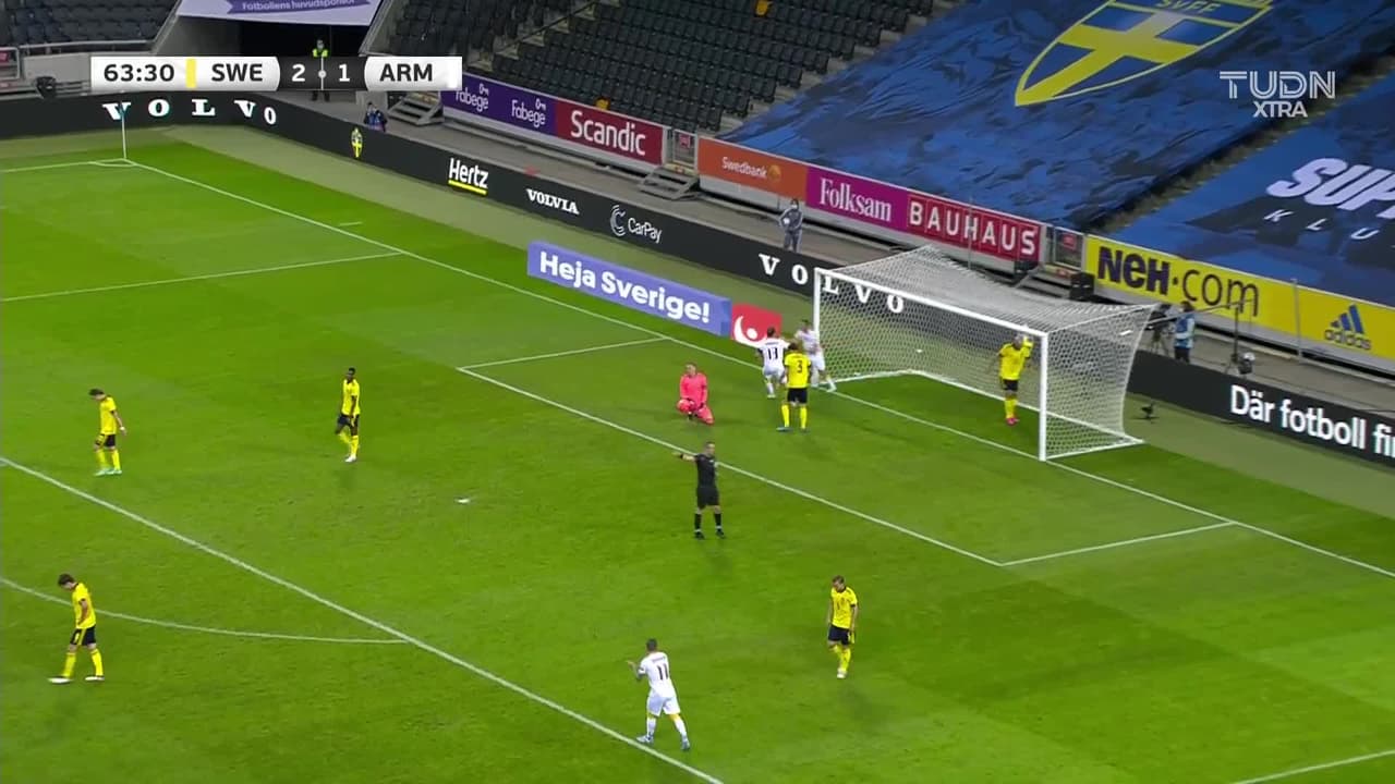 Tiro atajado por abajo a la izquierda. Vahan Bichakhchyan (Armenia) Disparo con la derecha desde el centro del área. Asistencia de Kamo Hovhannisyan.