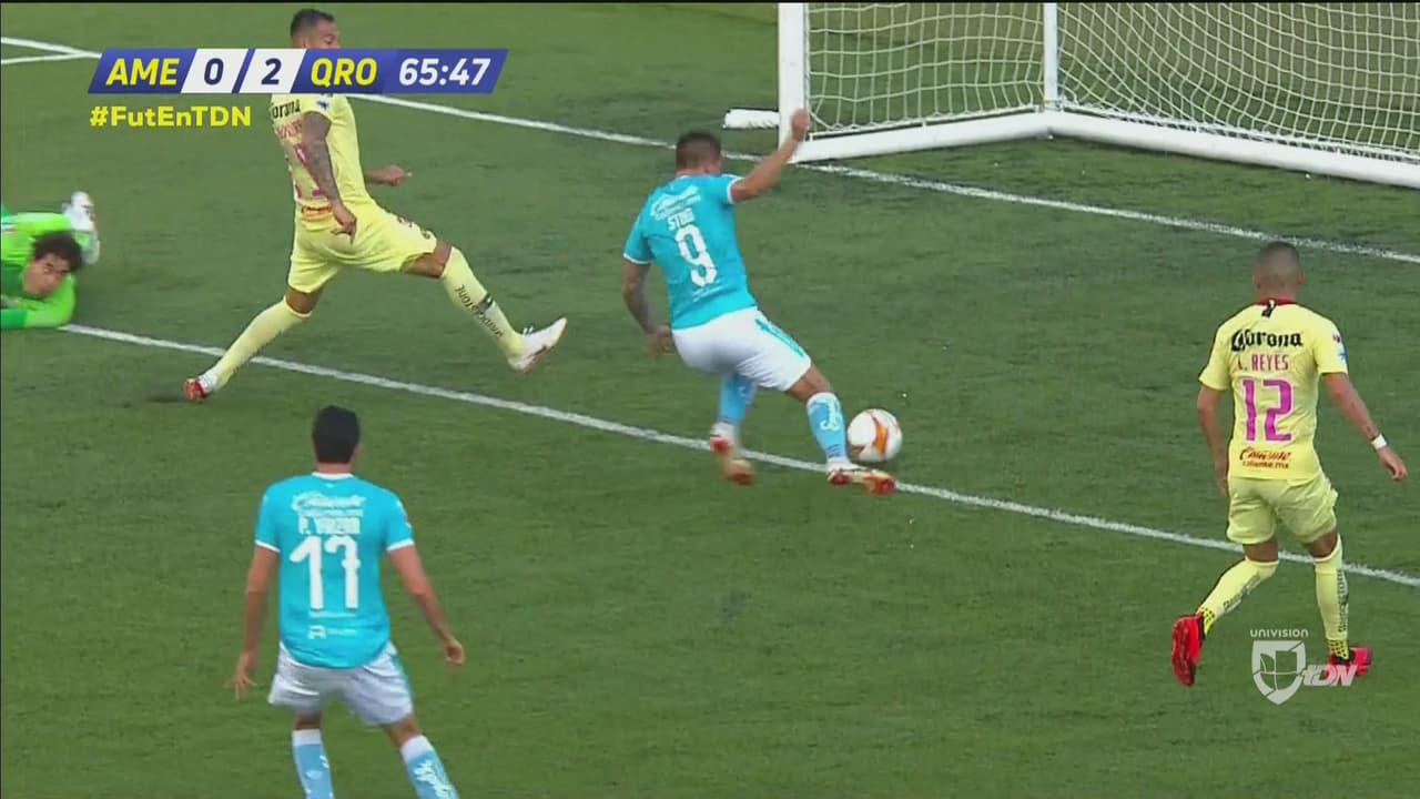 Stum cerró la pinza de gran forma y puso el 2-0 para los Gallos Blancos. Buen gol de los queretanos.