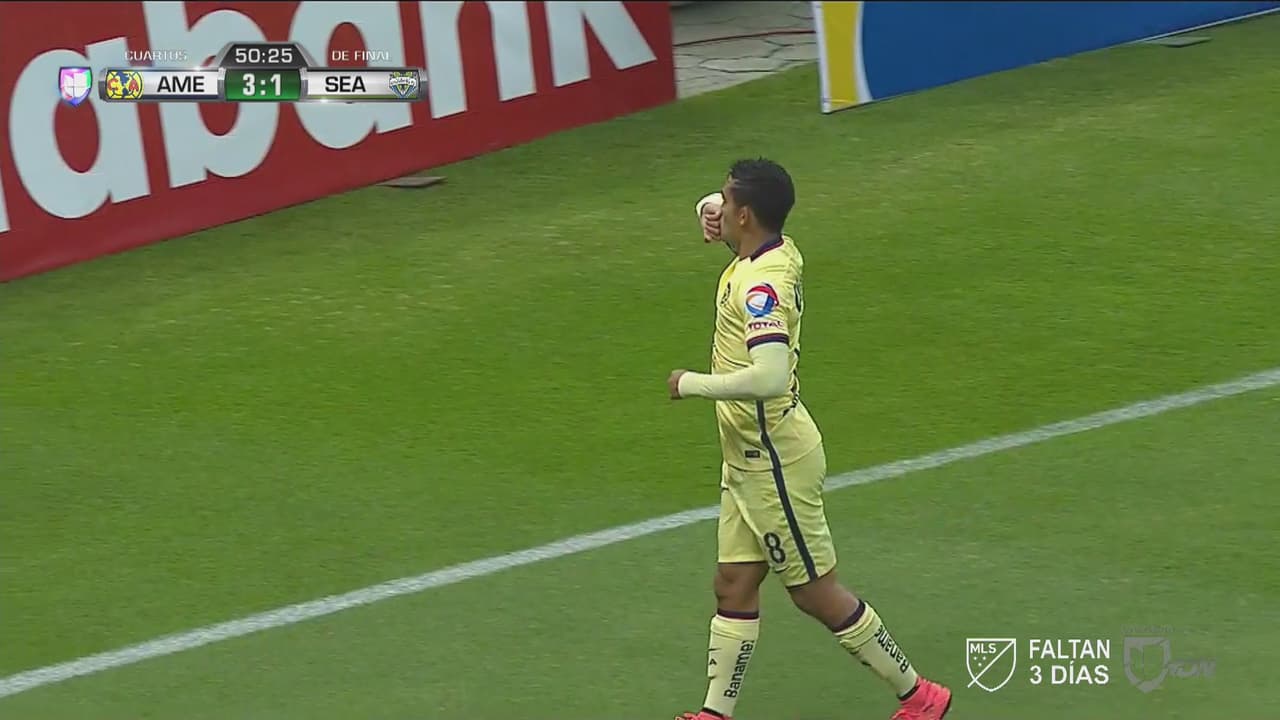 El jugador americanista marcó el tercero de su equipo luego de un disparo de pierna derecha tras un centro de Paul Aguilar