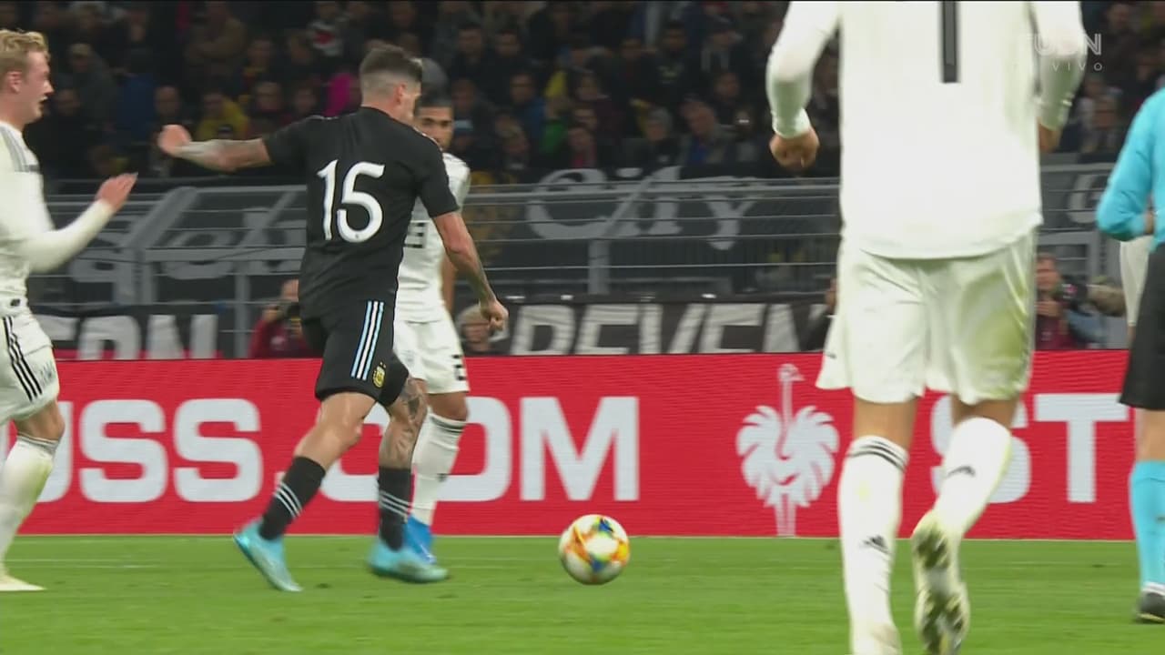Aparece el ataque de la Albiceleste, pero el poste rechazó el balón