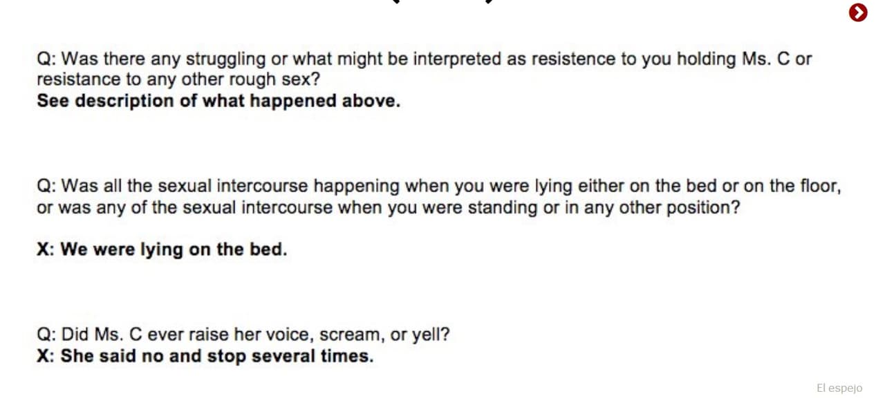 -Después está un cuestionario interno que los abogados de CR7 le aplicaron al propio jugador, en el que Kathryn es conocida como ‘la Señora C’ y en la que revela que ella habría dicho que no en varias ocasiones a consentir las relaciones sexuales.