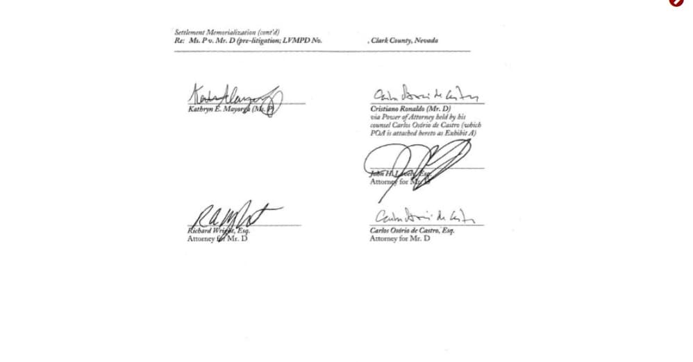 -En la segunda hoja del acuerdo firmado se le permite a Kathryn escribirle una carta a Cristiano en donde ella expone su sentir del caso y en la que afirma que buscaba una disculpa personal en lugar de dinero.