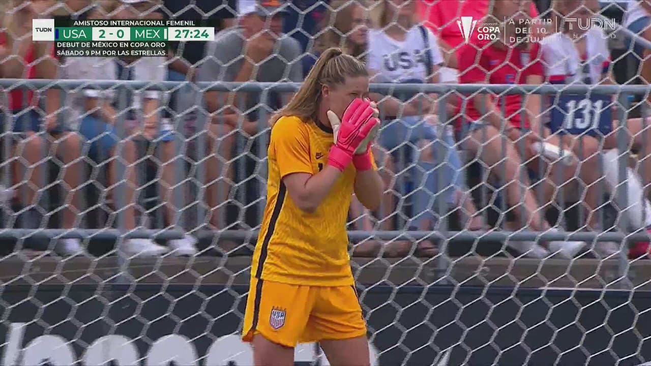 Disparo de la camiseta 11 que vigiló bien la portera Naeher y se fue por encima al 27’.