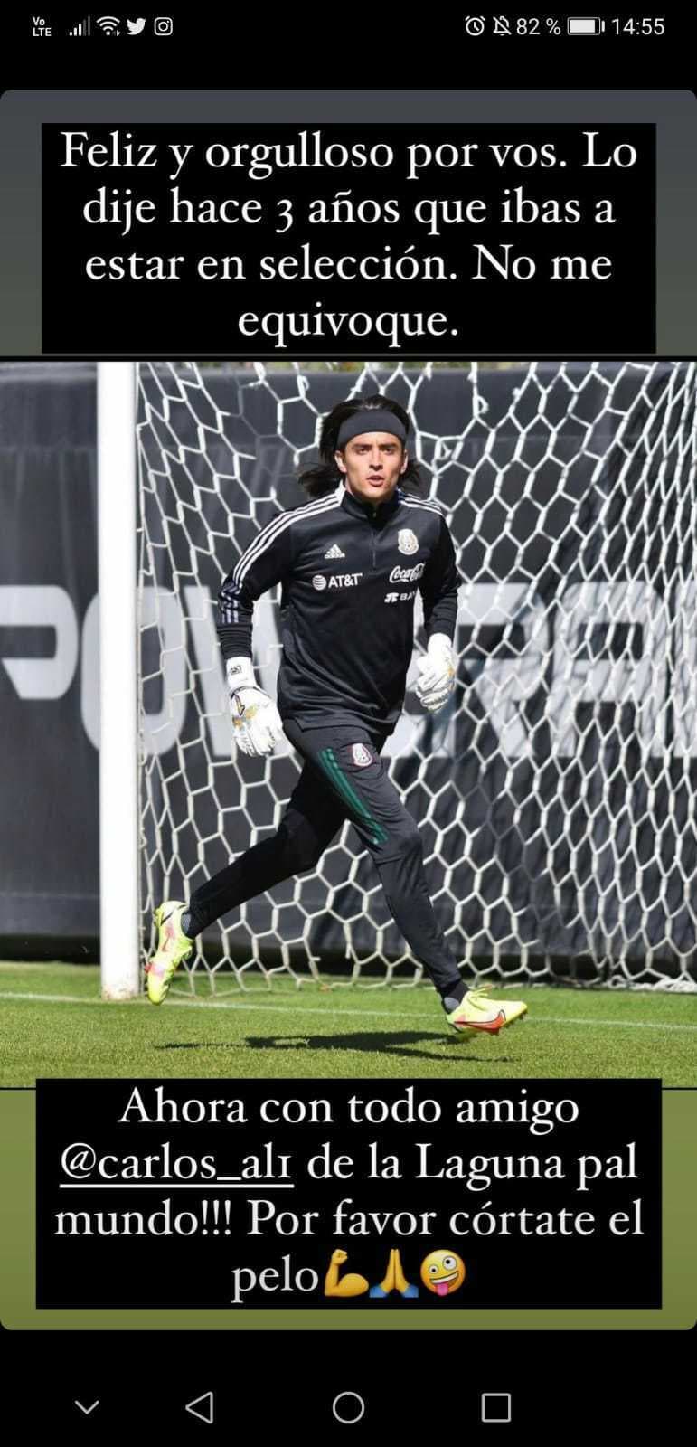 “Ahora con todo amigo Carlos Acevedo, de la Laguna pa’l mundo. Por favor, ¡córtate el pelo!”, añadió el guardameta argentino en su historia de la red social Instagram donde incluso arrobó al portero mexicano acompañado de una foto donde luce los colores de la Selección Mexicana.