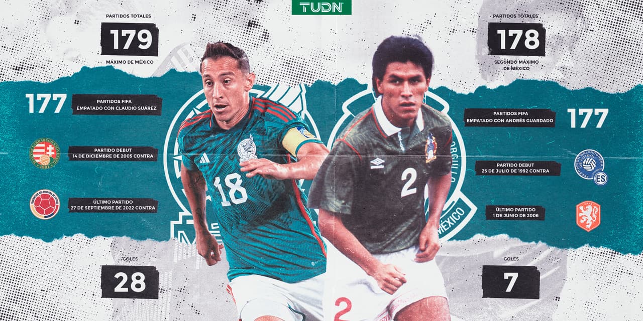 Andrés Guardado logró en 17 años empatar la marca de Claudio Suárez de más partidos oficiales FIFA con la Selección Mexicana al llegar a 177 en total este martes ante Colombia.