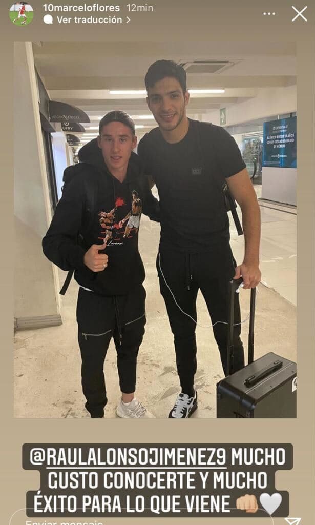 Marcelo Flores presumió una fotografía con Raúl Jiménez en una historia de Instagram en la que agradecíó la oportunidad de conocer al delantero de Wolverhampton y de la selección mexicana.