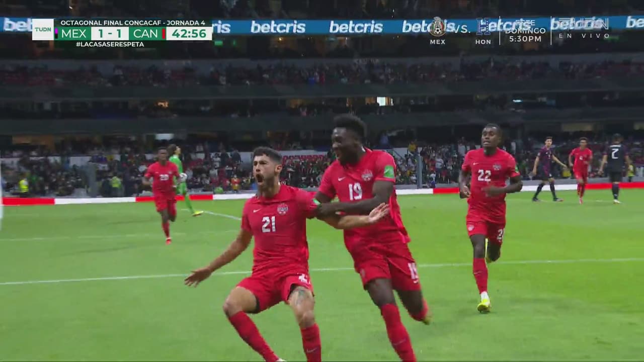 Jonathan Osorio no perdona y marca el empate para los canadienses con un golazo tras rematar dentro del área previo al descanso.