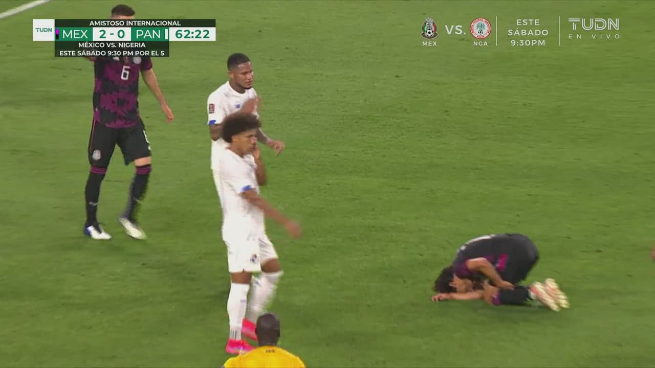 Diego Lainez recibe la furia de los panameños y se calienta tras una patada recibida.